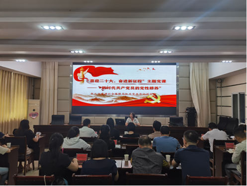 2022年9月8日上午,市人力资源社会保障局开展“喜迎二十大·奋进新征程”主题党课活动。机关党委书记蔡君同志围绕“新时代中国共产党员的党性修养”主题,从什么叫党性修养、为什么要加强党性修养、如何加强党性修养等三个方面进行了精彩阐释和讲授,并勉励大家以更加坚定的理想信念、更加牢固的宗旨意识、更加务实的作风改进不断提升自身党性修养,做新时期的好党员、好干部,走好每一步“赶考路”,以实际行动迎接党的二十大胜利召开。此次活动有机关党委委员、各基层党组织委员及青年党员代表共计30余人参加。