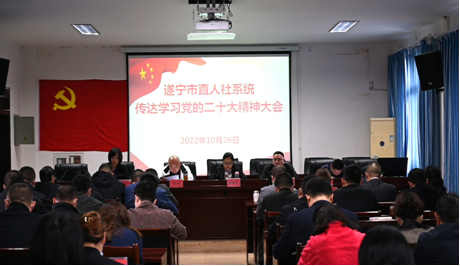 2022年10月26日下午,遂宁市直人社系统召开会议,专题传达学习党的二十大精神。局机关领导班子成员、机关各科室(中心)干部、局属各单位班子成员参加会议。