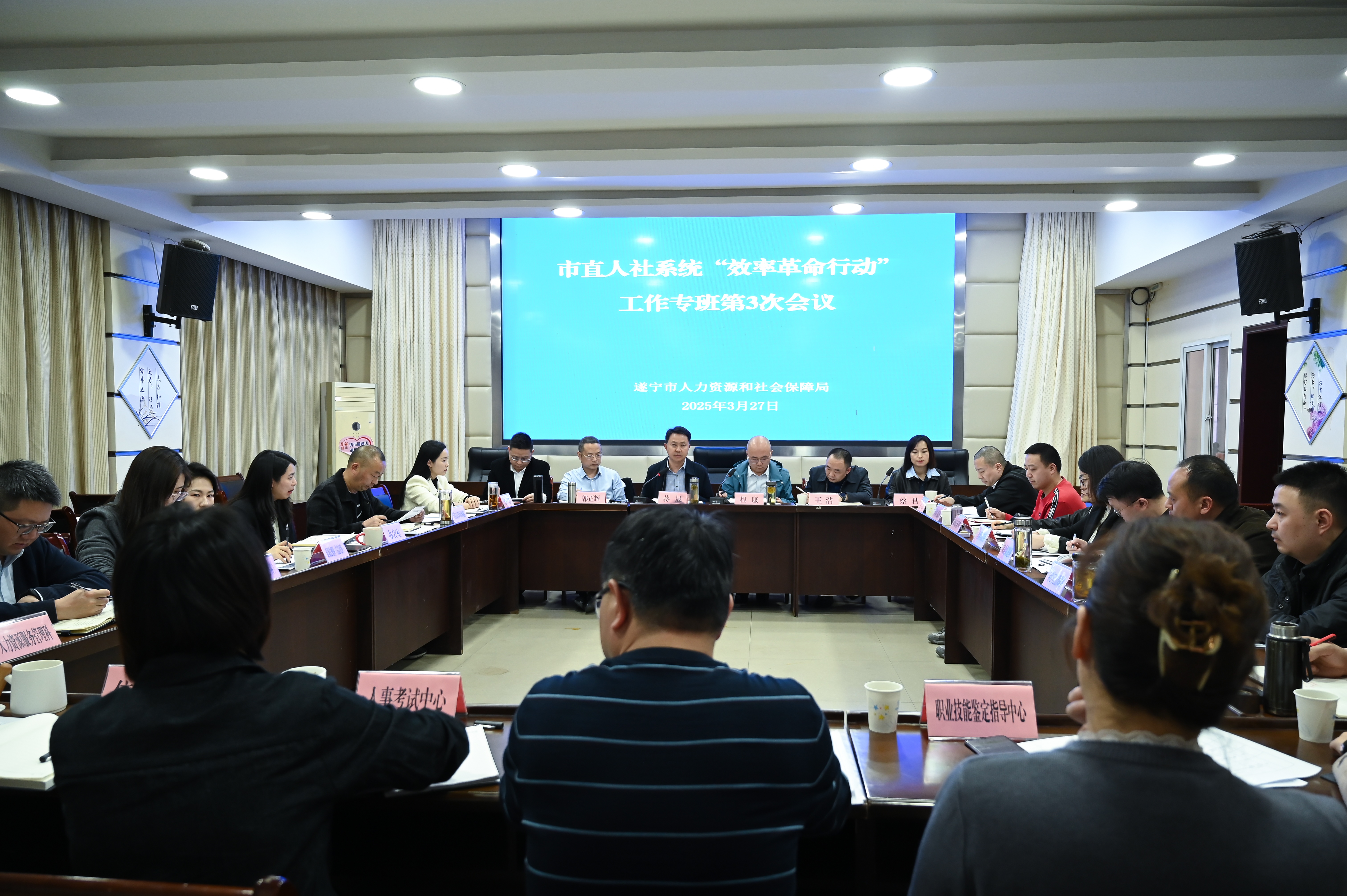 3月27日,市直人社系统“效率革命行动”专班第3次会议召开。传达全市相关会议精神,听取各工作专项组运行情况汇报,通报各区县意见建议征集情况,研究市直人社系统“效率革命行动”下步推进举措。党组书记、局长、专班组长蒋晟同志主持会议并讲话。局领导、局属各单位、各科室(中心)主要负责人作交流发言。