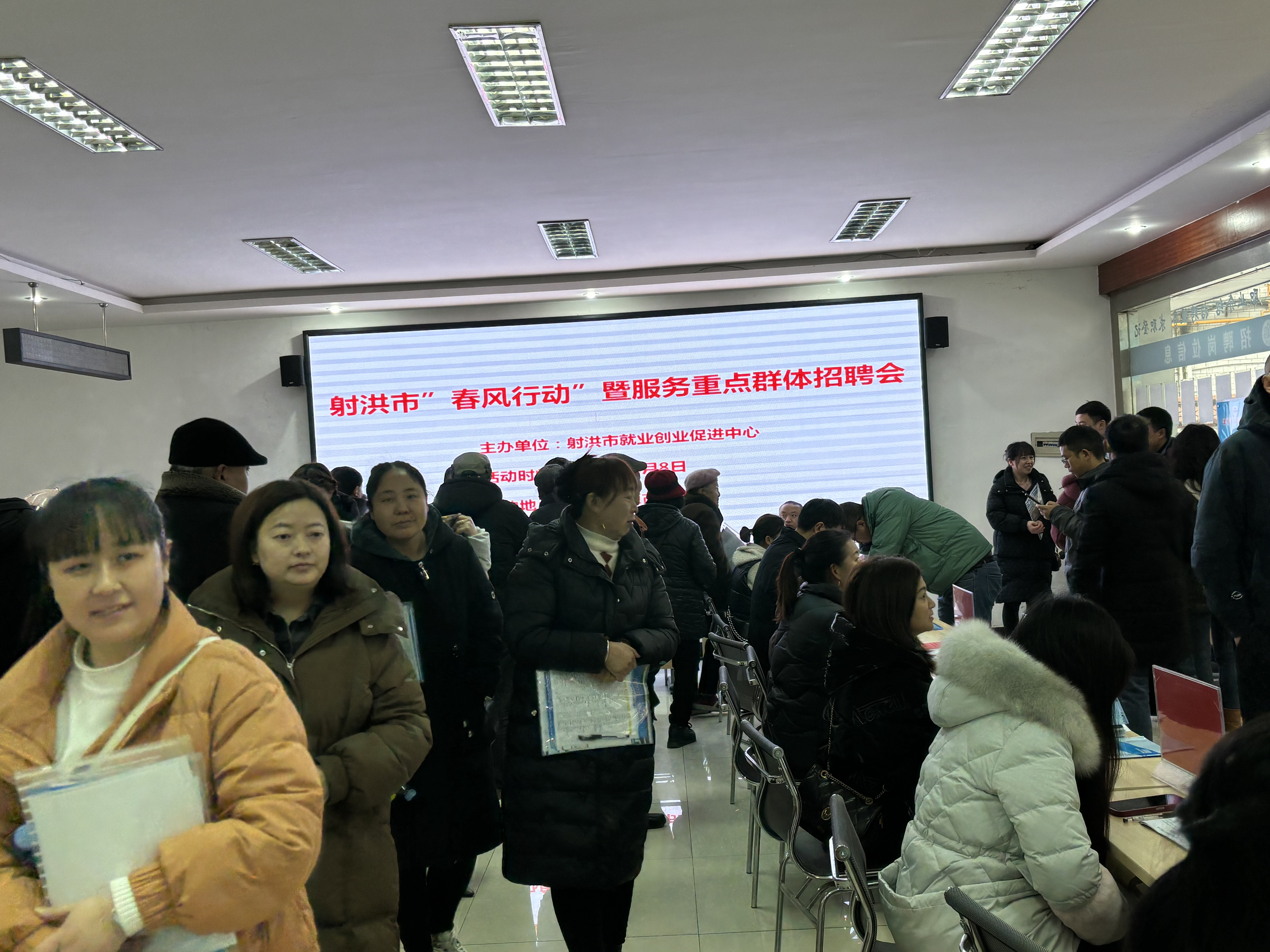 为促进高校毕业生、脱贫劳动力、返乡农民工等重点群体高质量充分就业,2月8日,射洪市“春风行动”暨服务重点群体招聘会在射洪市就业创业促进中心一楼招聘服务大厅成功举办。本次活动以“春风送岗促就业,精准服务助发展”为主题,抓住春节前后劳动力流动高峰期,为求职者和企业搭建沟通桥梁,现场气氛热烈、成效明显。