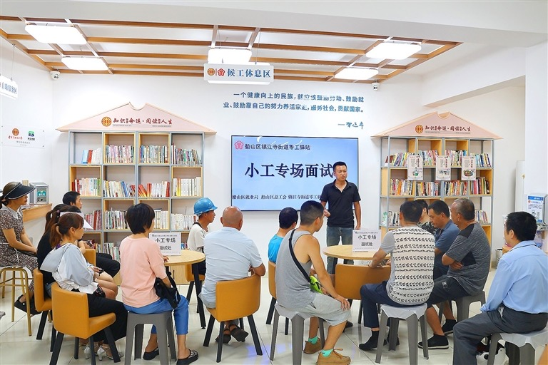 一、就业服务“双线”发力,提供“全天候”服务。驿站内设有综合服务、信息发布、劳务洽谈等功能区,配备专职工作人员,提供求职登记、用工指导、技能培训等“一站式”线下就业服务。依托遂宁公共招聘网、“船山人社”微信公众号、“船山区镇江寺零工驿站”微信公众号等线上平台,动态更新岗位需求信息,方便用工主体和灵活就业人员随时随地查看招工求职信息,真正实现“周末不打烊”全天候公共就业服务。