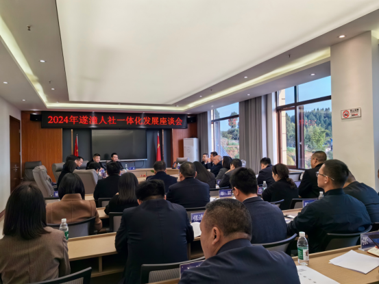蒋晟一行首先考察了田家镇及双江镇金龙社区基层基本公共服务标准化工作情况,随后在双江镇人民政府召开2024年遂潼人社一体化发展座谈会。会上,遂潼人社主要负责同志分别介绍了遂潼两地人社部门2023年推进遂潼一体化发展先行区建设情况,与会人员围绕今年重点推进工作计划进行了深入交流,为2024年遂潼人社一体化发展锚定目标、引领航向。