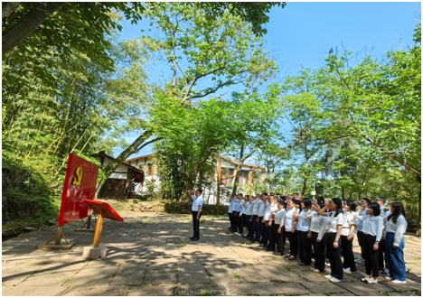 在牛角沟起义遗址广场,全体党员干部面向党旗,再次重温入党誓词,铮铮誓言在大家心中激荡,激励大家永远牢记初心使命、接续为民奉献。
