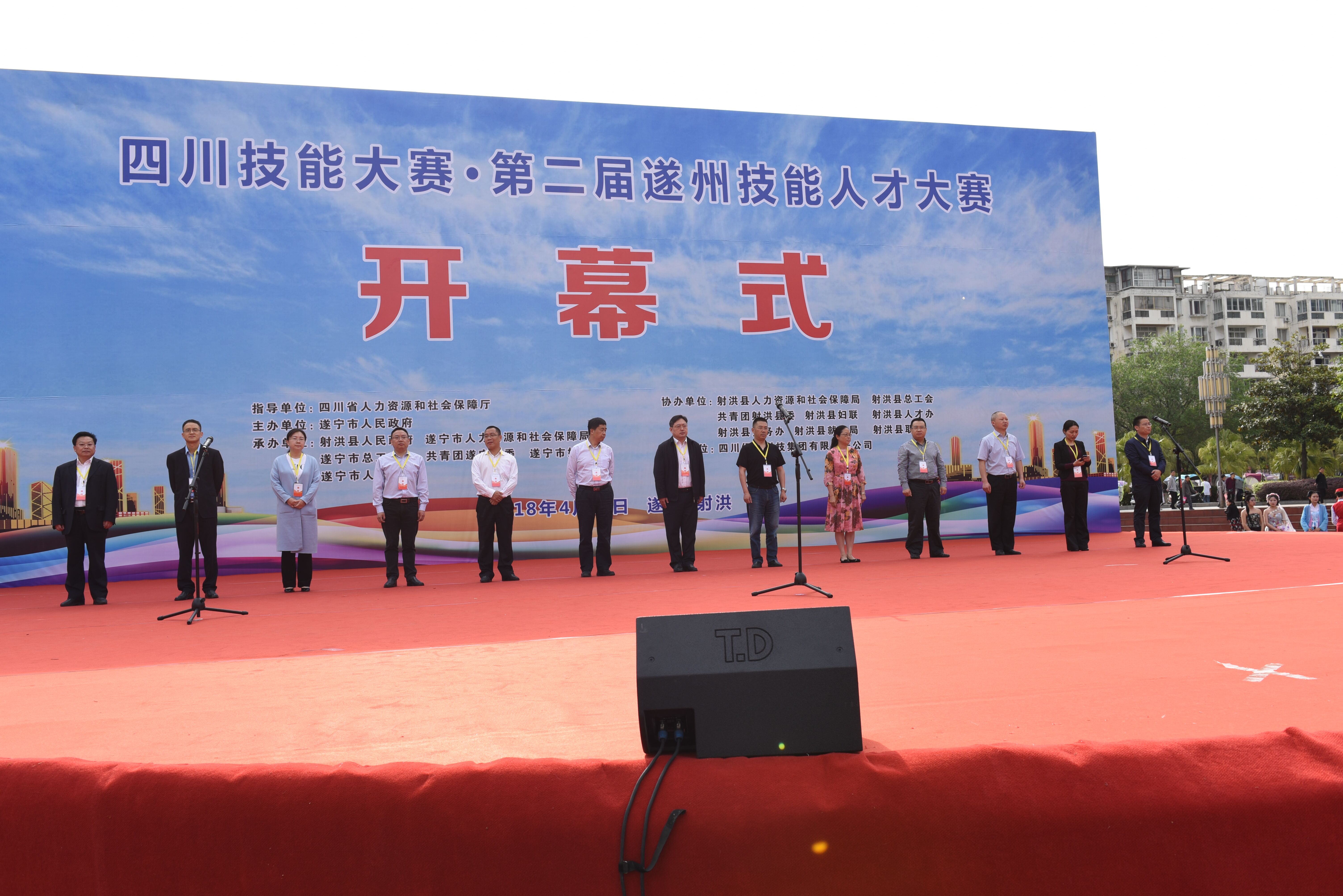 4月27日上午9时,由市政府主办,射洪县政府、市人社局、市总工会、团市委、市妇联共同承办的第二届遂州技能人才大赛开幕式在射洪县子昂广场举行。市领导袁超,省人社厅职业技能鉴定中心主任张开荣,市委组织部常务副部长蒋勇、市委组织部副部长、市人社局局长梁勤玲出席活动,市人才办、市总工会、团市委、市妇联、市就业局、射洪县的有关领导参加活动。开幕式上,市委组织部、省人社厅相关领导作了讲话,射洪县委相关领导致辞,裁判代表和参赛选手代表进行了宣誓。市领导袁超宣布大赛开幕。