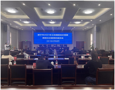 1013日,遂宁市召开工伤预防知识竞赛颁奖仪式暨工伤预防调研座谈会,市人力资源社会保障局、市应急局等8部门组成的工伤预防联席会议成员单位相关领导及10余家重点企业负责人参加了会议,会议特邀了省安全生产专家作现场指导。