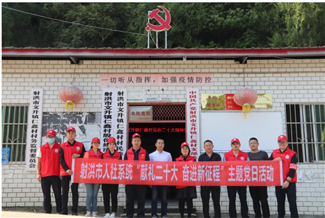 为庆祝党的二十大胜利召开,射洪市人力资源和社会保障局组织干部职工到文升镇仁鑫村开展了系列结对共建志愿服务活动。