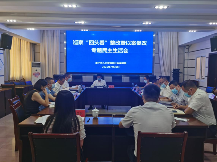 2021年7月30日,市人力资源社会保障局巡察“回头看”整改暨以案促改专题民主生活会召开。市人民政府副市长雷刚出席会议,市纪委监委、市委组织部有关科室负责同志到会指导,市人力资源社会保障局领导班子成员参加,其余县级领导干部、相关科室(单位)负责人列席会议。