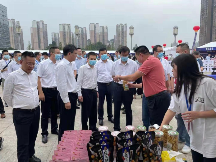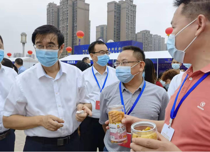 9月14日上午,在四川省首届农民工服务周活动暨第二届西部农民工返乡创业大赛活动中,人力资源社会保障部农工司司长尚建华、省人力资源社会保障厅厅长胡斌一行莅临我市返乡创业企业四川射洪佳兴旺食品有限公司创业成果展示点位视察。尚建华司长等领导听取了企业总经理钱烈刚的返乡创业情况介绍,详细询问了企业生产经营现状,并勉励要做强做大企业,带动更多的农民工企业家返乡创业,吸纳更多的农民工就地就近就业。市农民工服务中心主任梁志勇、副主任罗林等陪同视察。