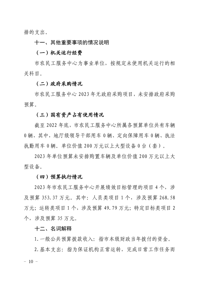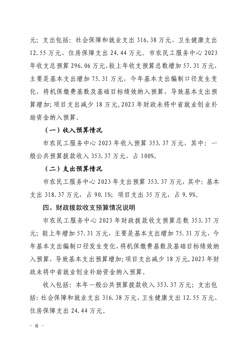 2023年市农民工服务中心预算编制说明(预算公开)