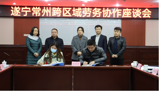 会上,遂宁市农民工服务中心与常州市人力资源和就业创业管理中心签订了《劳务协作协议》,遂宁顺邦安防服务有限公司、遂宁恒佳人力资源服务中心分别与常州科瑞尔服务外包有限公司签订了《企业合作协议》。遂宁广利工业发展有限公司、遂宁顺邦安防服务有限公司、遂宁恒佳人力资源服务中心等有关负责人参加座谈会并交流发言。