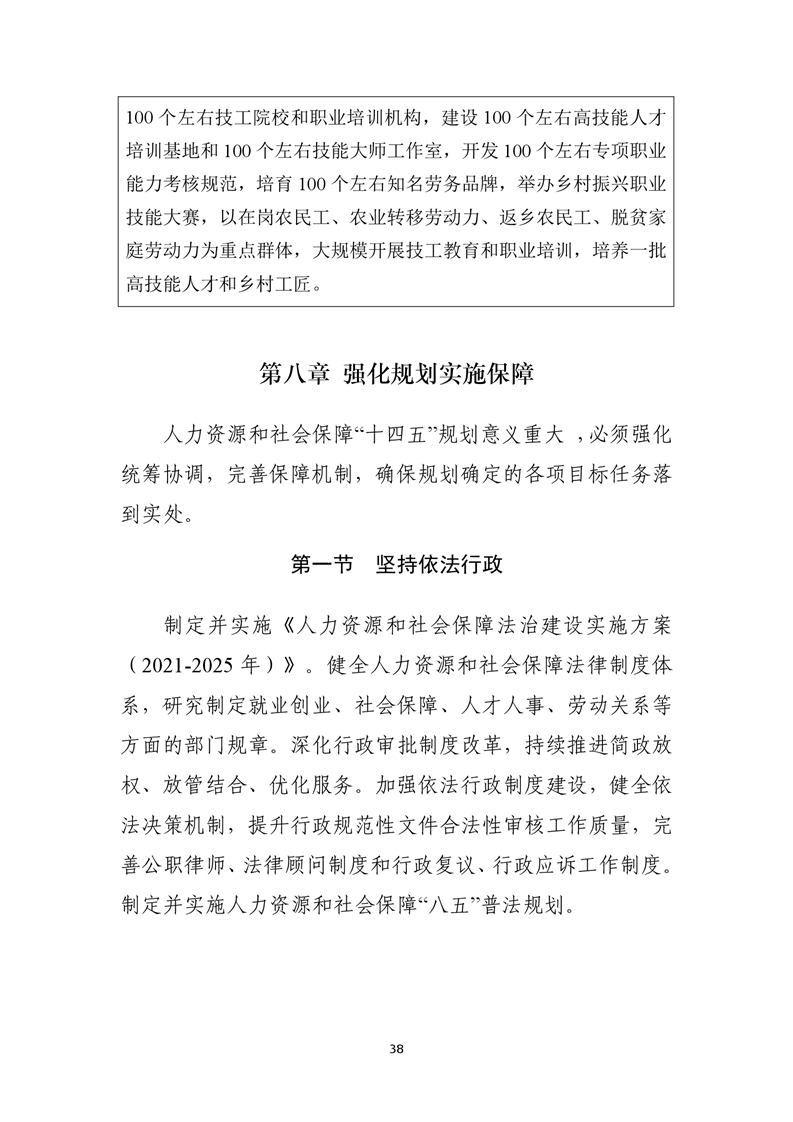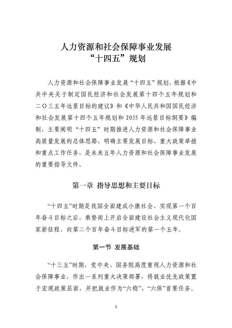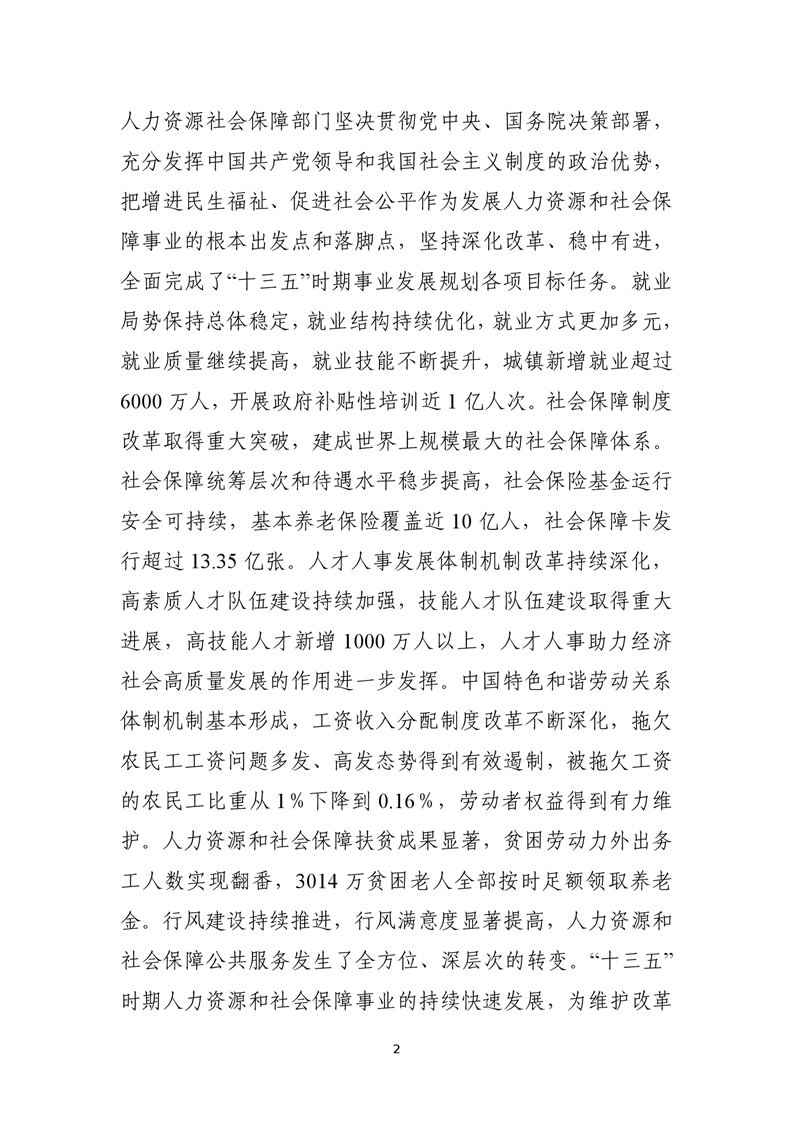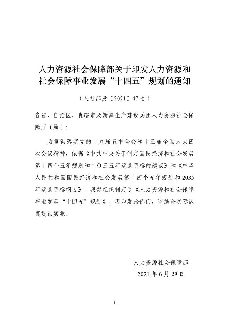 人力资源社会保障部关于印发人力资源和社会保障事业发展“十四五”规划的通知