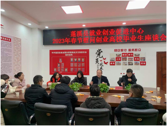 为增进创业大学生交流、发现创业大学生需求、解决创业大学生问题,1月17日下午,蓬溪县人力资源和社会保障局、蓬溪县就业创业促进中心组织10余名创业高校毕业生召开了2023年春节慰问创业高校毕业生座谈会。蓬溪县人力资源和社会保障局、蓬溪县就业创业促进中心相关领导及科室负责人与高校毕业生齐聚一堂,共同为高校毕业生就业创业献计策、话未来。
