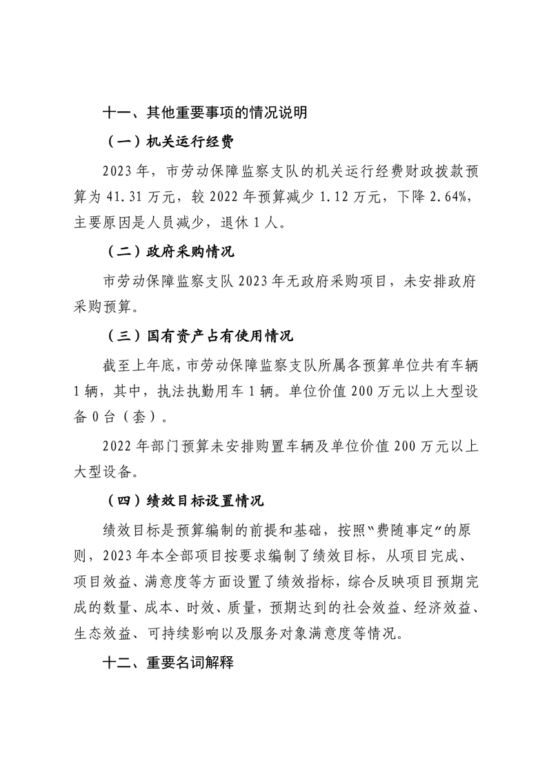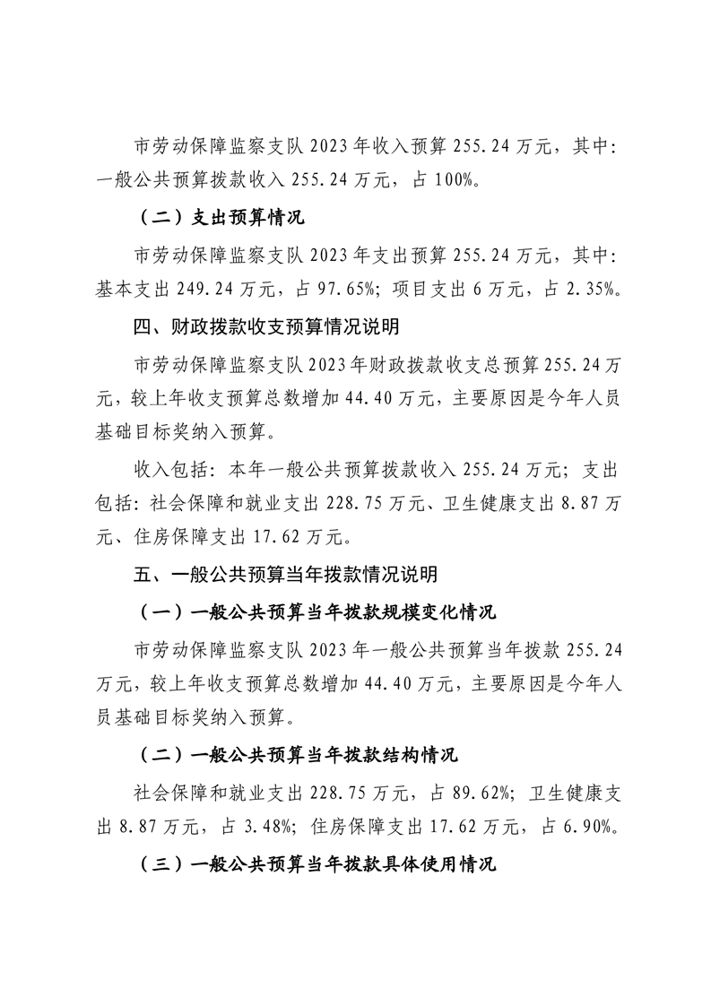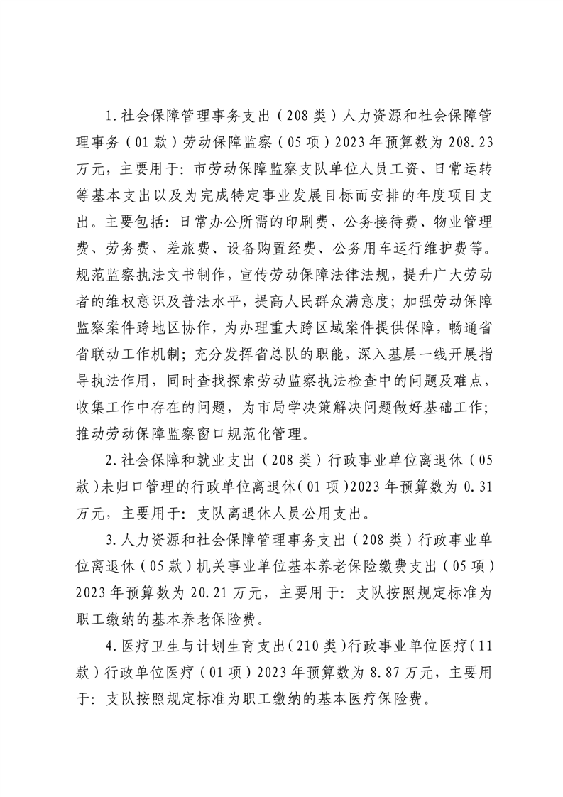 2023年市劳动保障监察支队预算编制说明(预算公开)