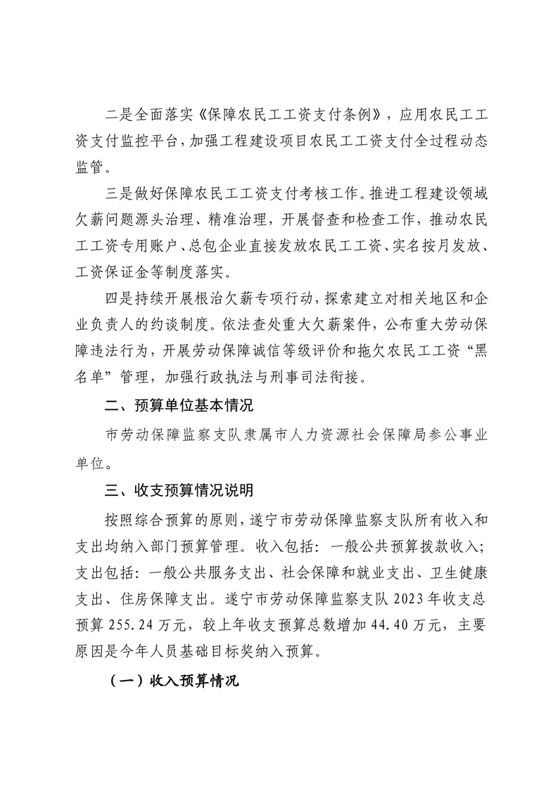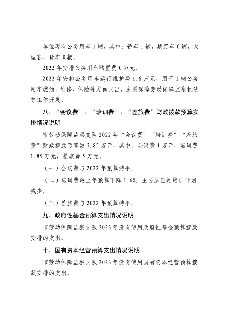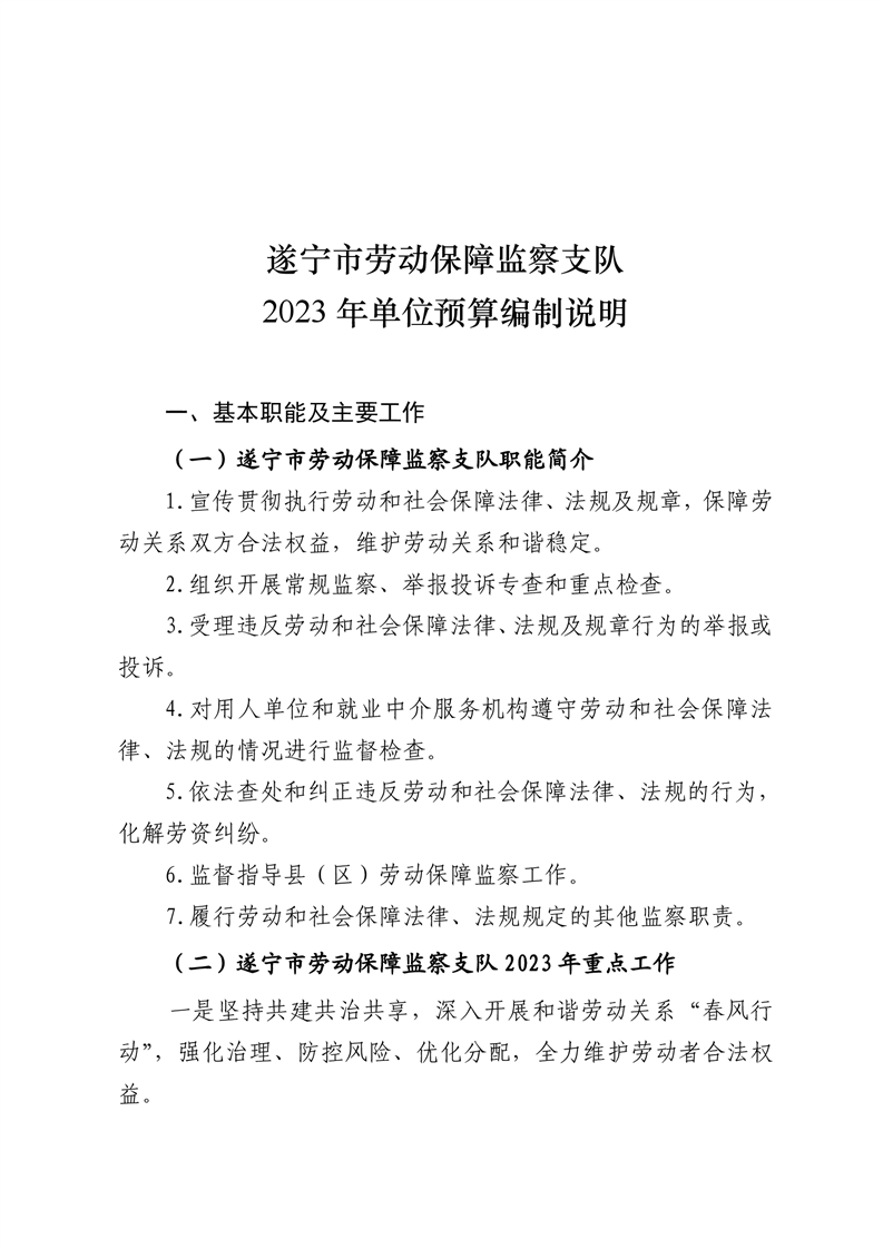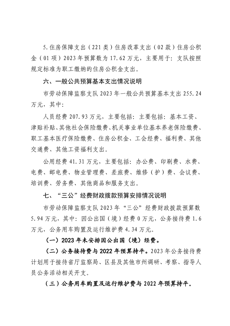 2023年市劳动保障监察支队预算编制说明(预算公开)