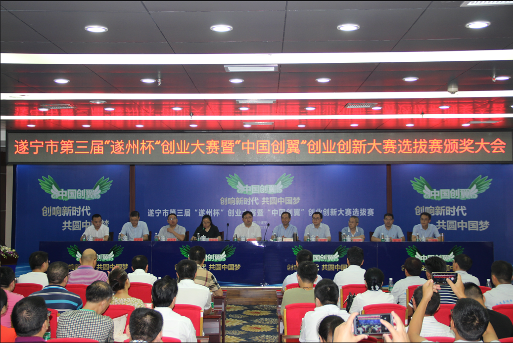 近日,遂宁市第三届“遂州杯”创业大赛暨“中国创翼”创业创新大赛选拔赛颁奖大会在遂宁市创新创业孵化中心举行。市委常委、副市长袁超出席大会并作重要讲话,省就业局副局长龙树贵及省、市相关部门领导出席大会。大会由市人社局党组书记、局长梁勤玲主持。