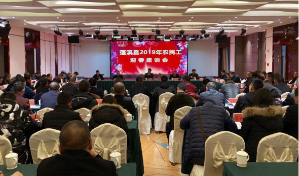 1月28日下午,蓬溪县2019年农民工迎春座谈会在蓬溪县万和大酒店隆重举行。县委书记张智勇出席会议,县委副书记代县长黄亚军主持会议。26个县直相关部门主要领导及62名农民工代表、4名蓬溪籍在外企业家、14名返乡创业人员参加座谈会。