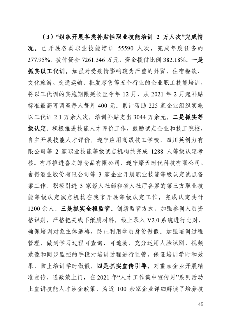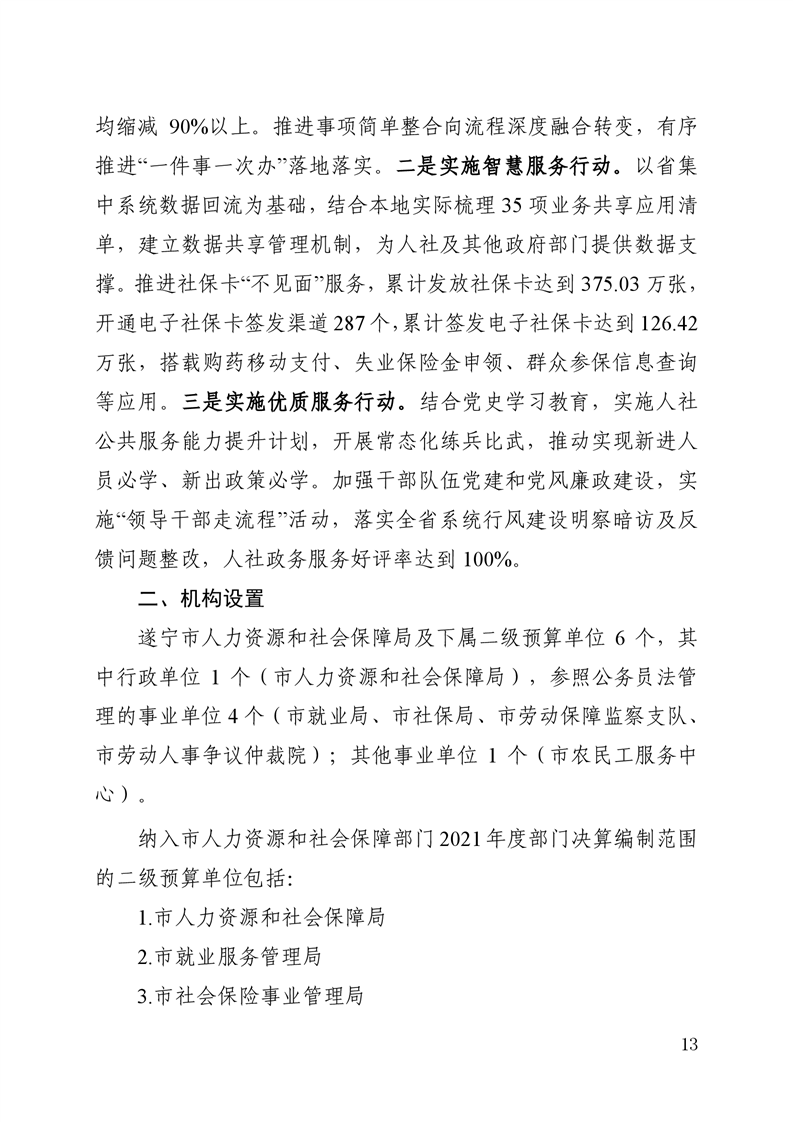 2021年度 遂宁市人力资源和社会保障局部门决算 (汇总)