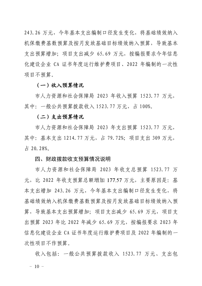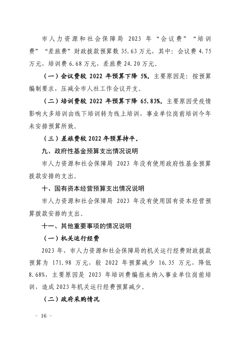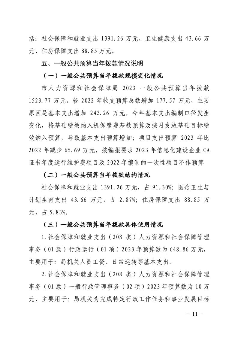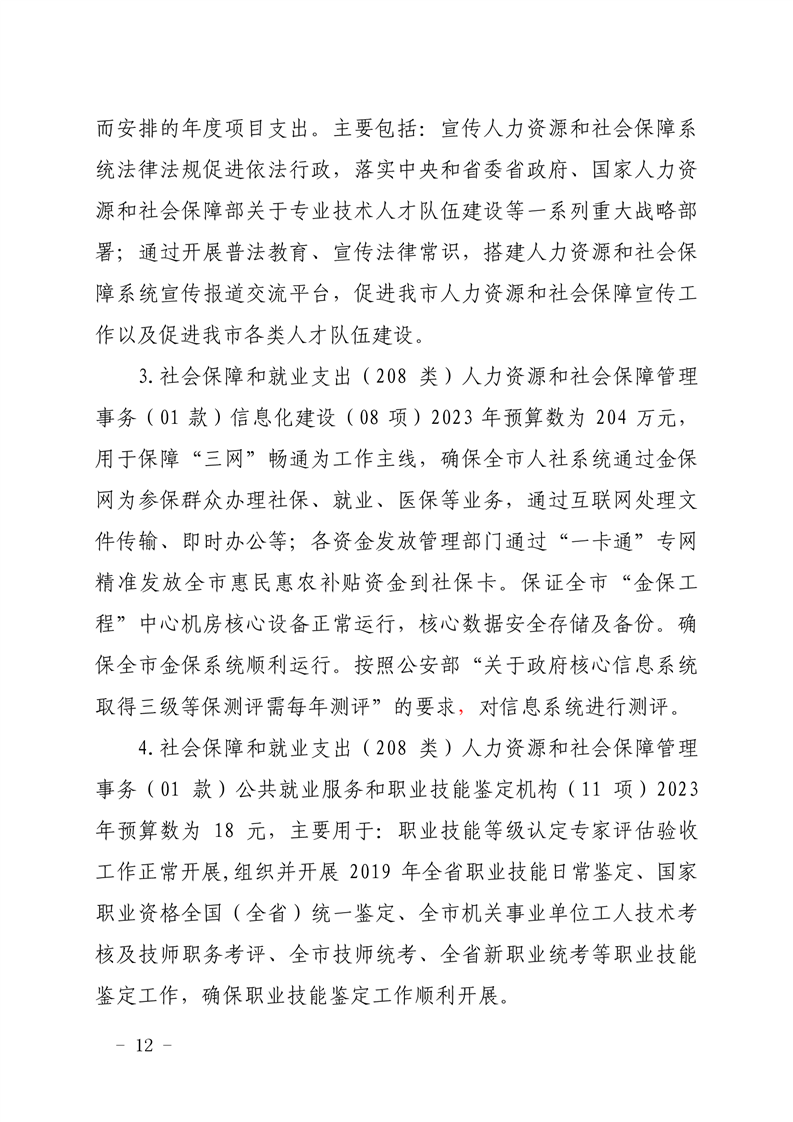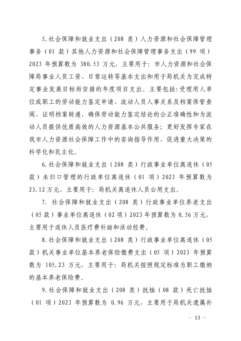 2023年市人力资源社会保障局预算编制说明(预算公开)(市人社局机关)