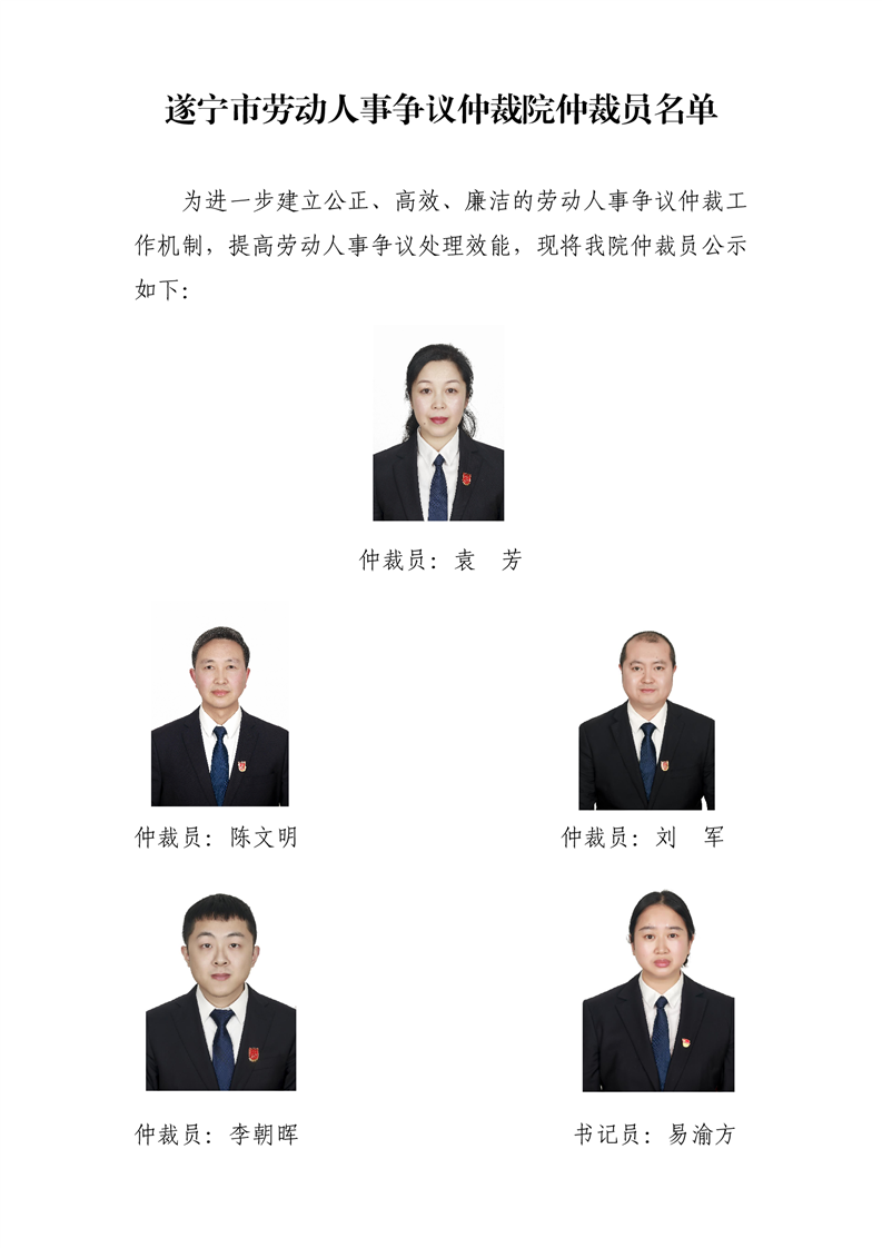 遂宁市劳动人事争议仲裁院仲裁员名单
