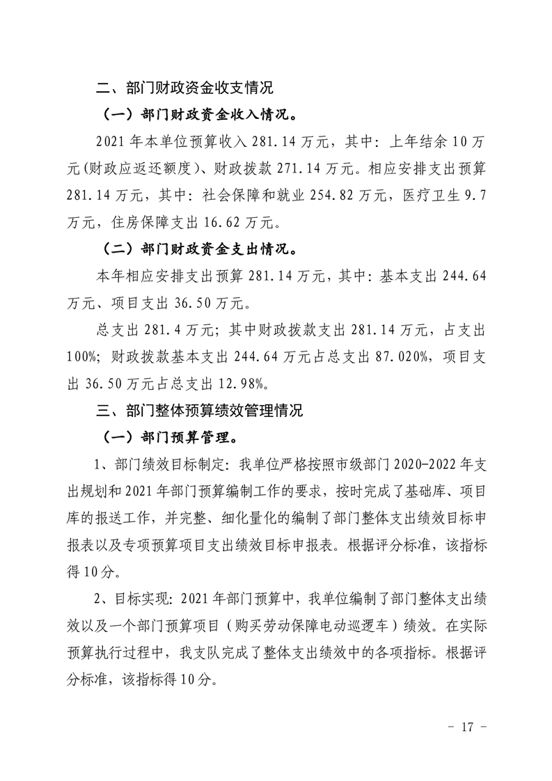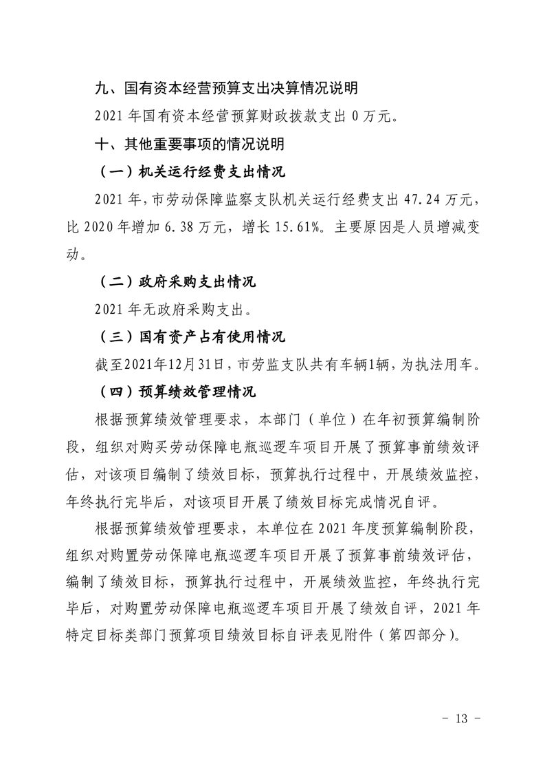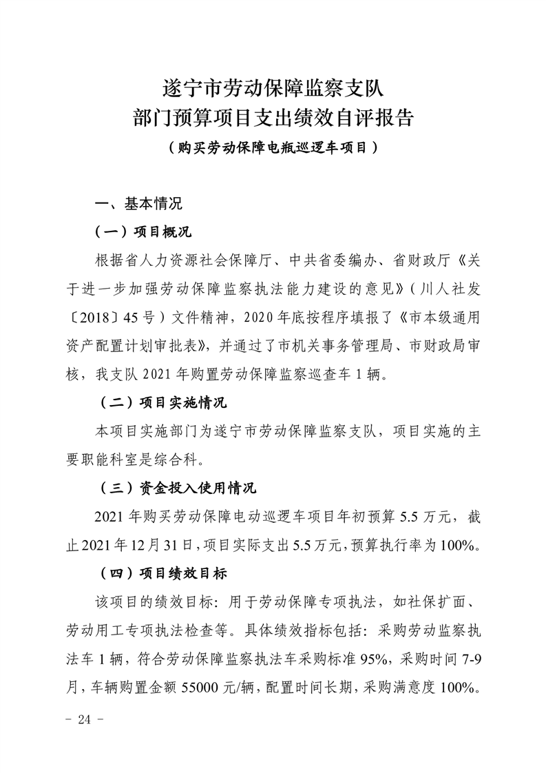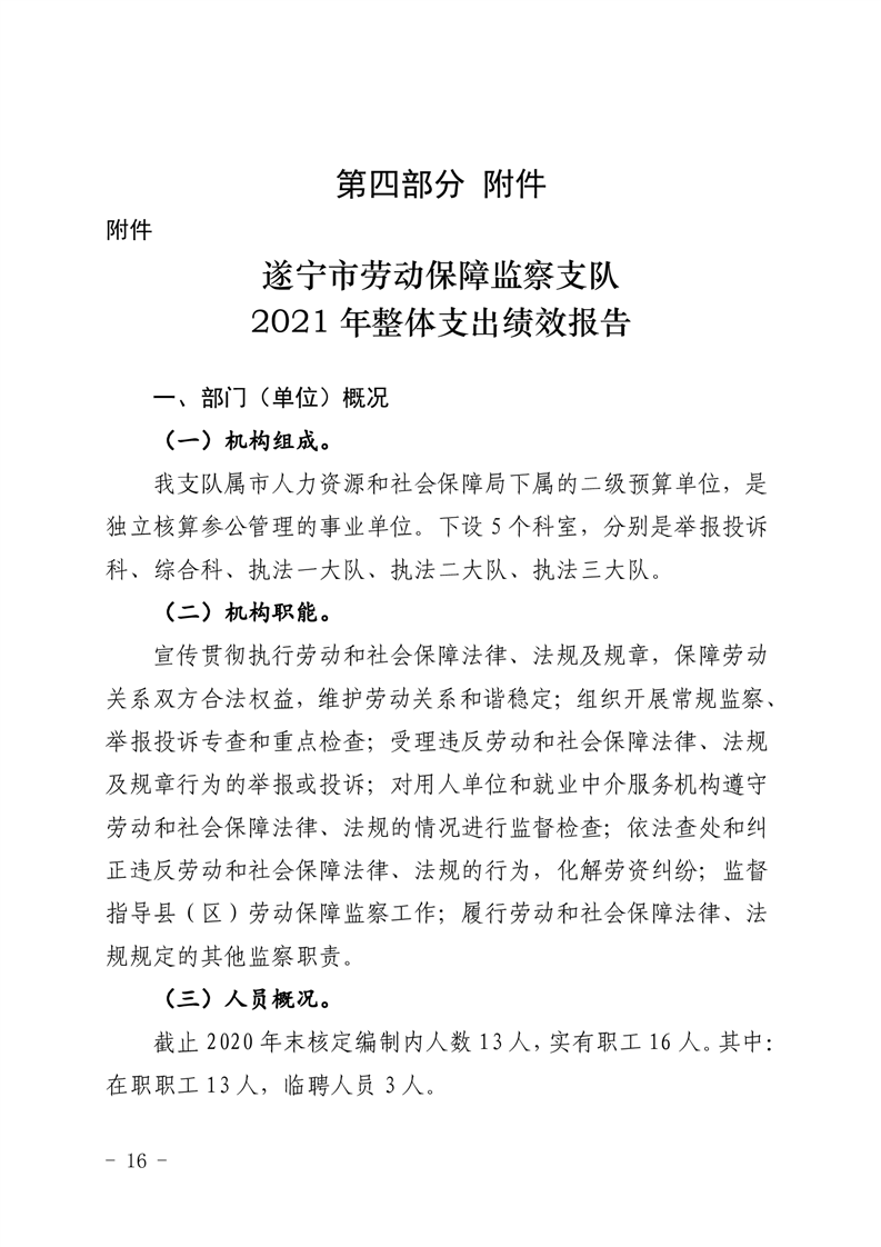 2021年度遂宁市劳动保障监察支队单位决算