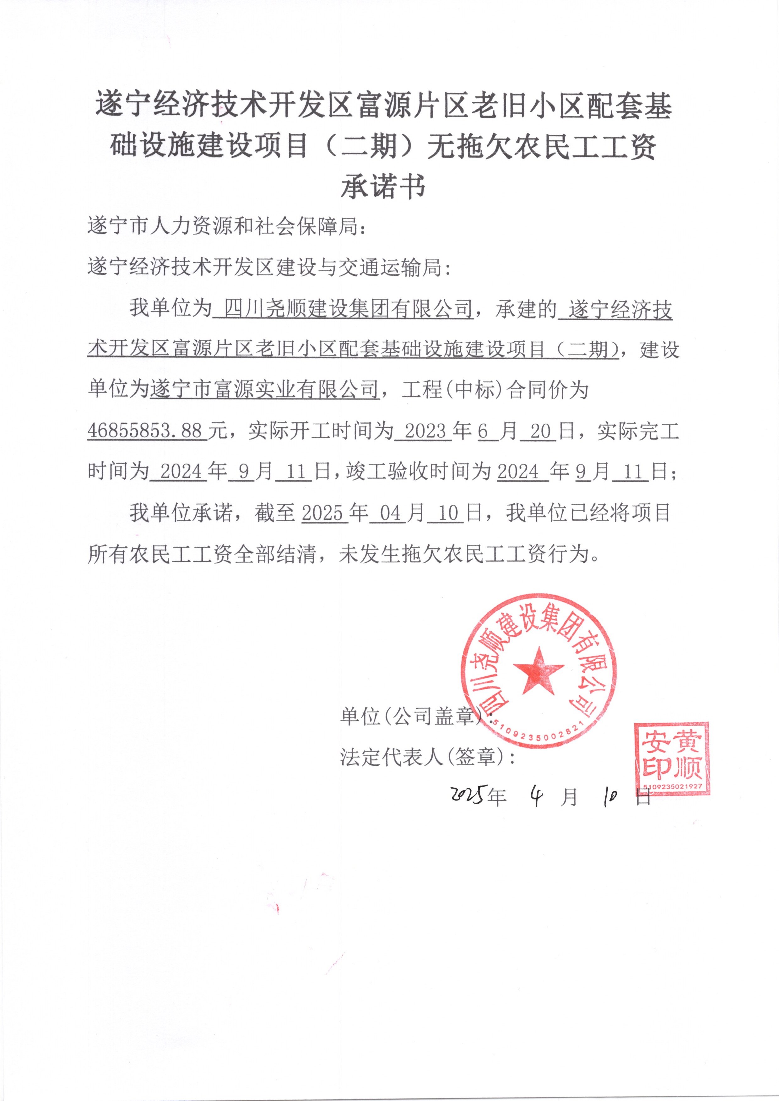 附件:遂宁经济技术开发区富源片区老旧小区配套基础设施建设工项目(二期)无拖欠农民工工资承诺书