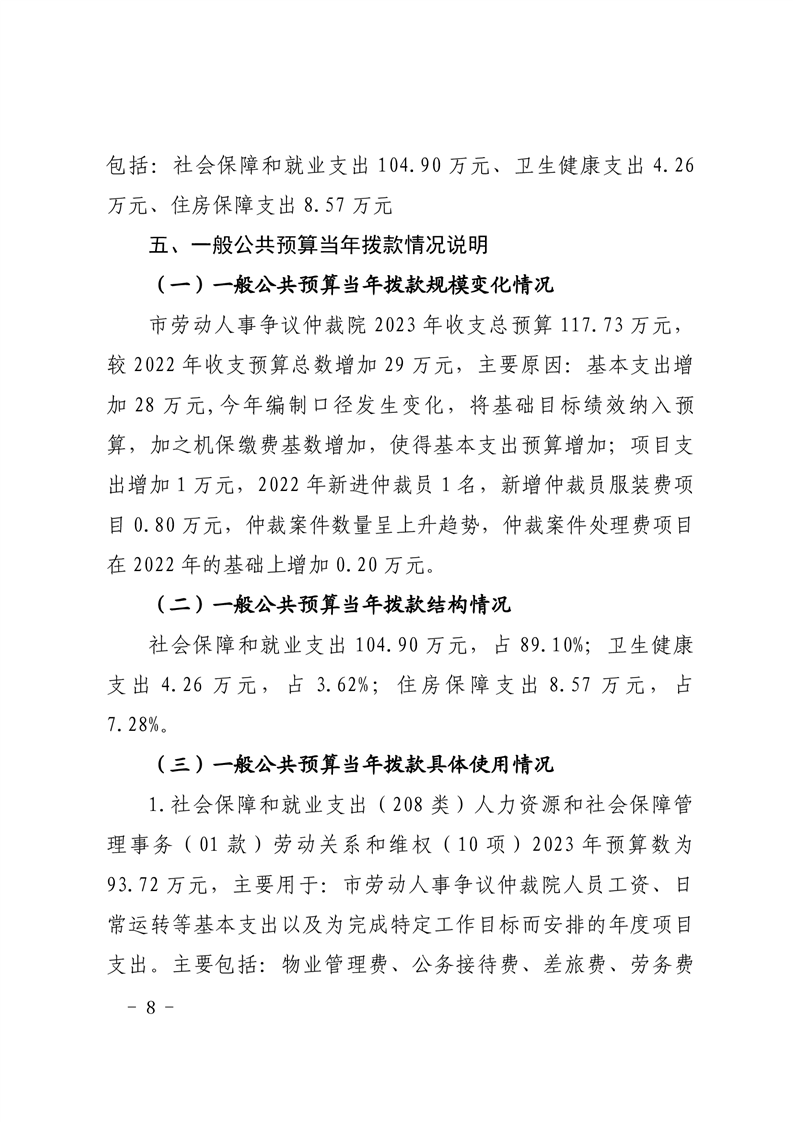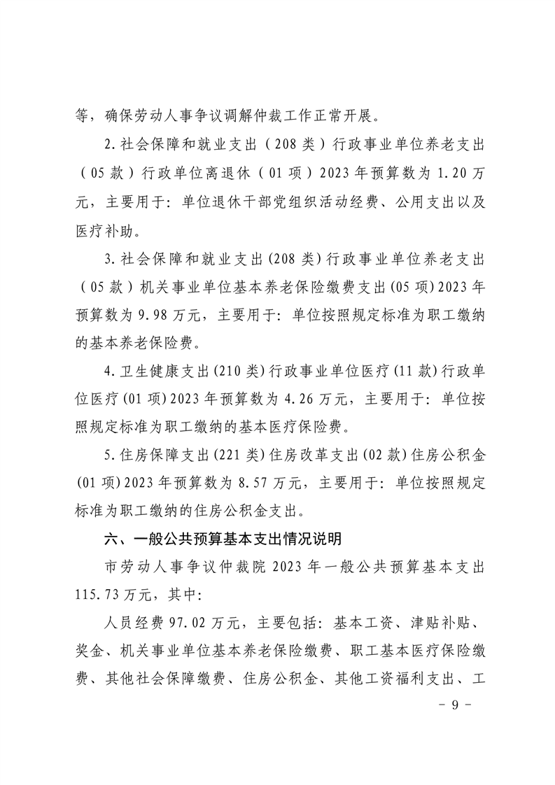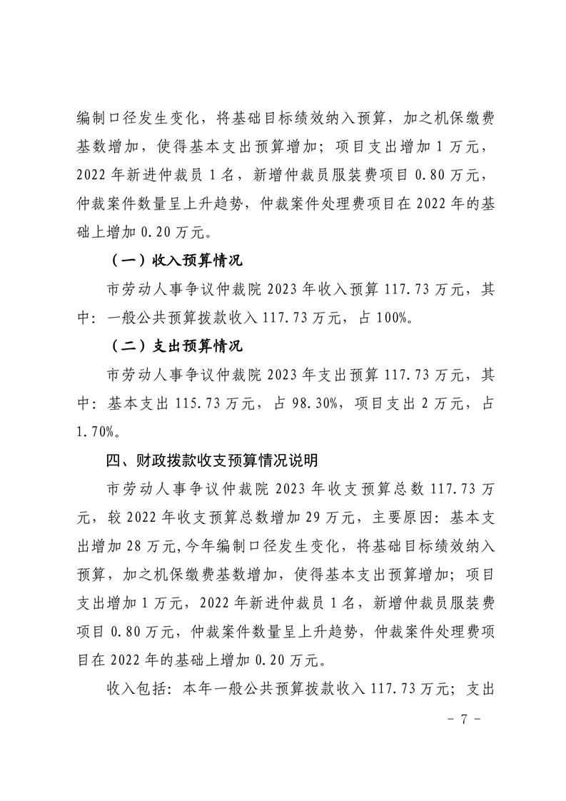 2023年市劳动人事争议仲裁院预算编制说明(预算公开)