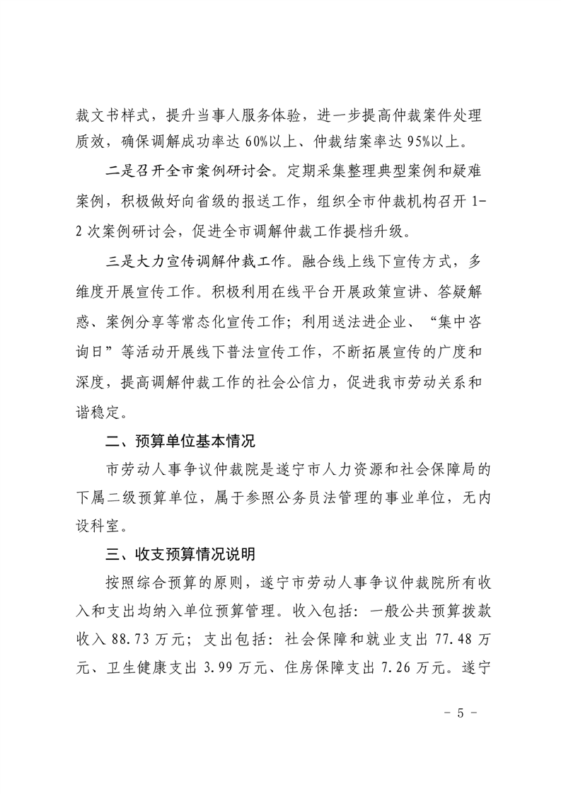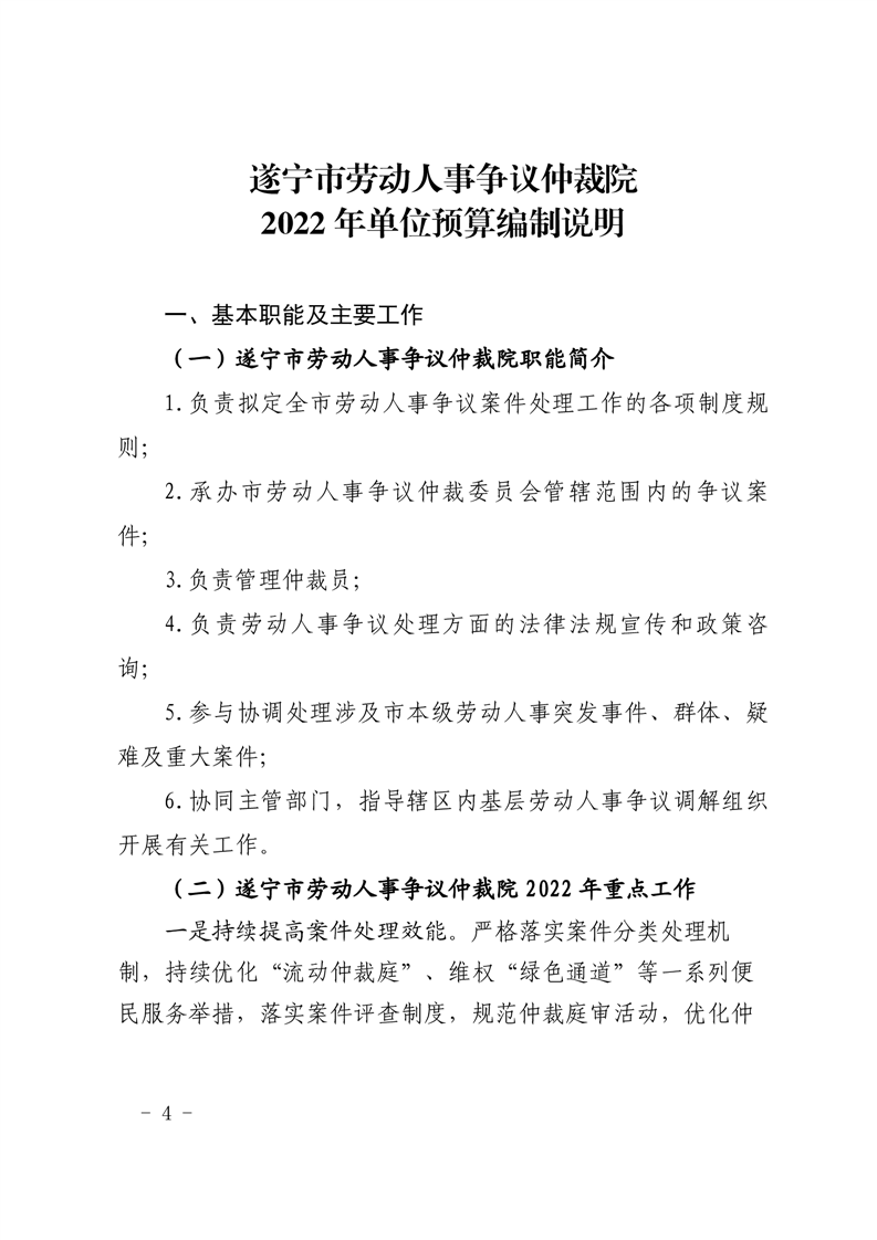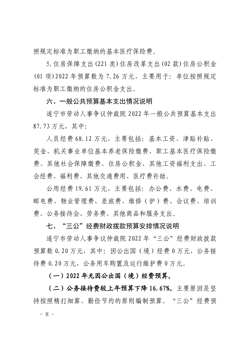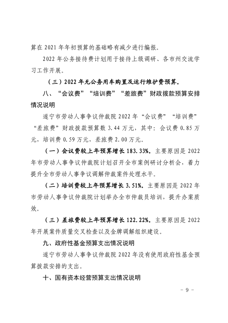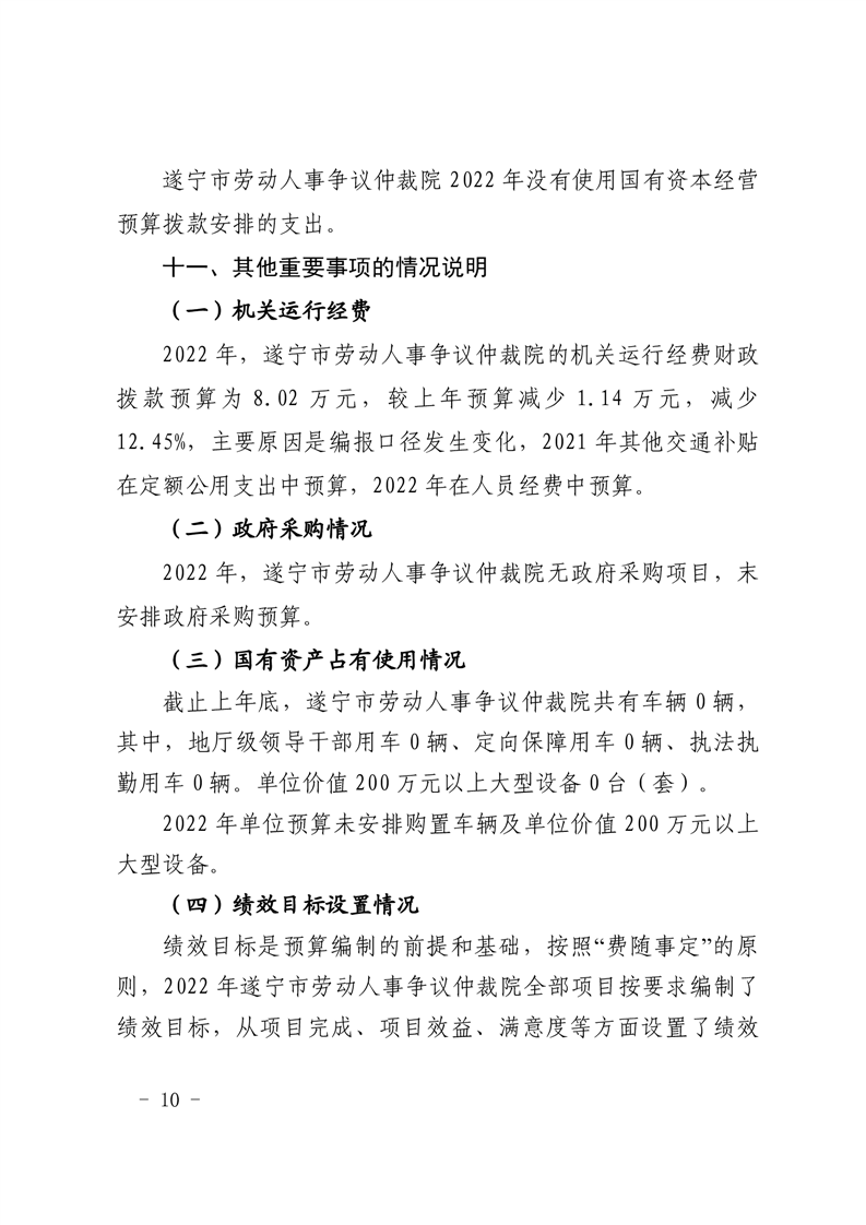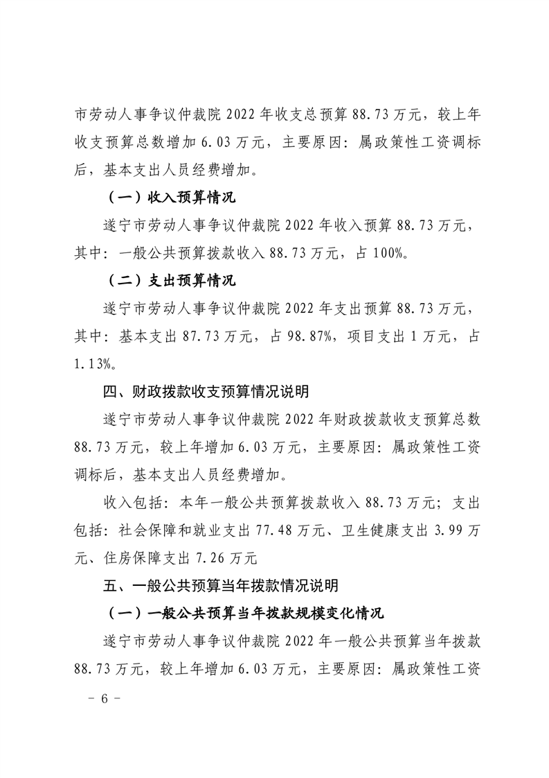遂宁市劳动人事争议仲裁院2022年单位预算公开
