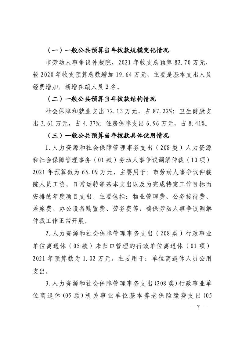 遂宁市劳动人事争议仲裁院2021年部门预算